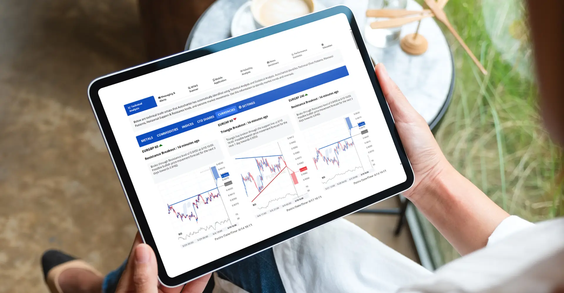 Revisa oportunidades de trading cada 15 minutos con nuevos escenarios basados en todos los tipos de análisis de Autochartist.