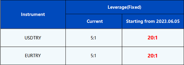 Please be advised that the leverage on certain forex products will be adjusted starting from 5th June 2023 to further optimize the competitiveness and improve the trading environment.