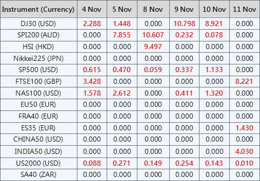 Please be advised that the trading hours and market session times of the following instruments will be closed on 13th and 14th November 2021.