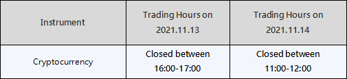 Note: Cryptocurrency market will also be closed during the system upgrade maintenance. Trading for Cryptocurrency will not be available on 00:00 – 16:00 of November 7th 2021.